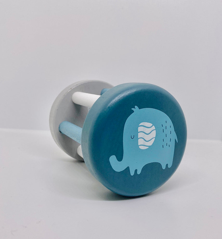 I skallran finns en liten kula i trä som skapar ett spännande ljud som underhåller ditt barn.