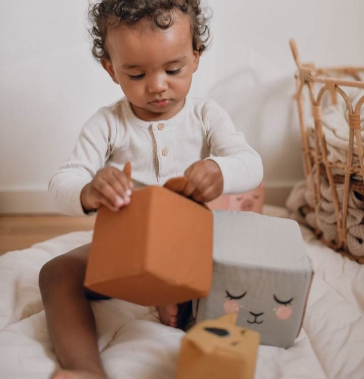 Blocken är mjuka nog att tryckas ihop om du råkar trampa på dem eller om babyn råkar ramla över dem, men fasta nog att staplas utan problem.